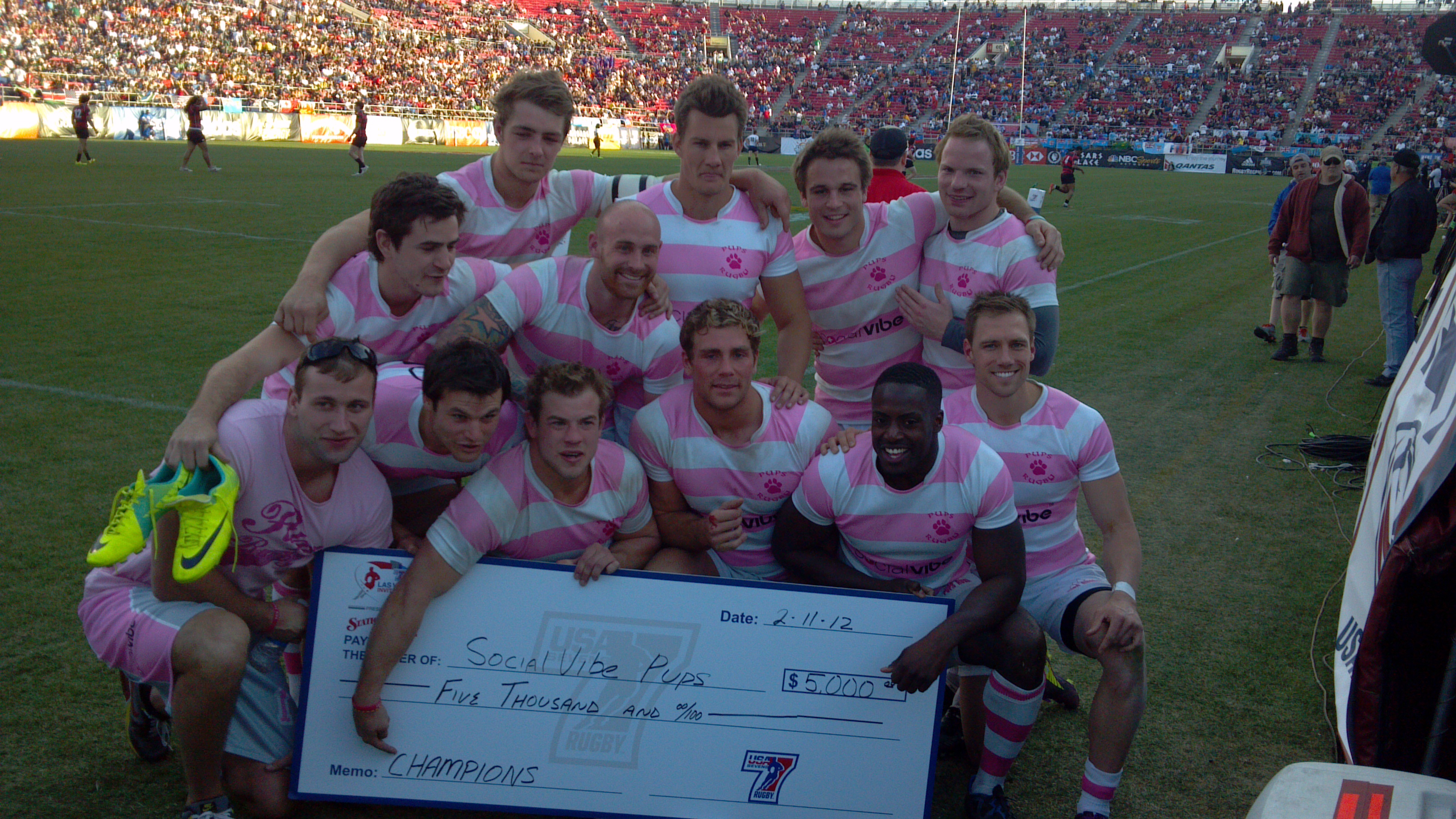 I just came back from a long, but very productive week in Las Vegas where I was working as the Strength and Conditioning Coach for the Social Vibe Pups. We won the Elite Men’s Division, the next step down from the IRB league that national teams compete in, and you’ll be able to watch as an Olympic Sport come 2016 in Rio. ViPR, a company that I’m proud to be affiliated with is a sponsor for the team, and rather than just get involved monetarily, I was able to represent ViPR as their Master Trainer with Rugby experience (full disclosure, I only played 15’s, and never at the level of the guys I was working with) and be in charge of their preparation for the tournament, as well as recovery between matches over three long days of Sevens Rugby. The Pups are an invitational team, so it was the first time a lot of these guys had played together. They had excellent fitness and could move the ball around the pitch with the best of any players I’ve ever seen. What I was able to do with them and the ViPRs I had shipped to Vegas was definitely something none of the other teams were able to do. ViPR is a Training tool that bridges the gap between Traditional Strength Training, and movement training. So I was able to have them lift it, flip it, drag and push it along the ground and throw it among other things. Exercises you just cant easily do with other equipment. My typical 10-15 minute routine with them prior to matches would start with some general mobility exercises, while some would be doing dynamic stretches, then ramp in to more plyometric movements with the ViPR, and finish my time with them by having them do some very sport specific drills with it. You can check out some video of it, hear the players thoughts on the use of ViPR, and be in awe of our uniforms (not outfits, uniforms). What I noticed as a coach is that as the tournament rolled on, these guys stayed fresh, came out harder that other teams as the tournament progressed, played their hearts out and won the tournament. Did use of ViPR contribute to their win? They might’ve done it without us, but I’d say ViPR played a big roll in their success.